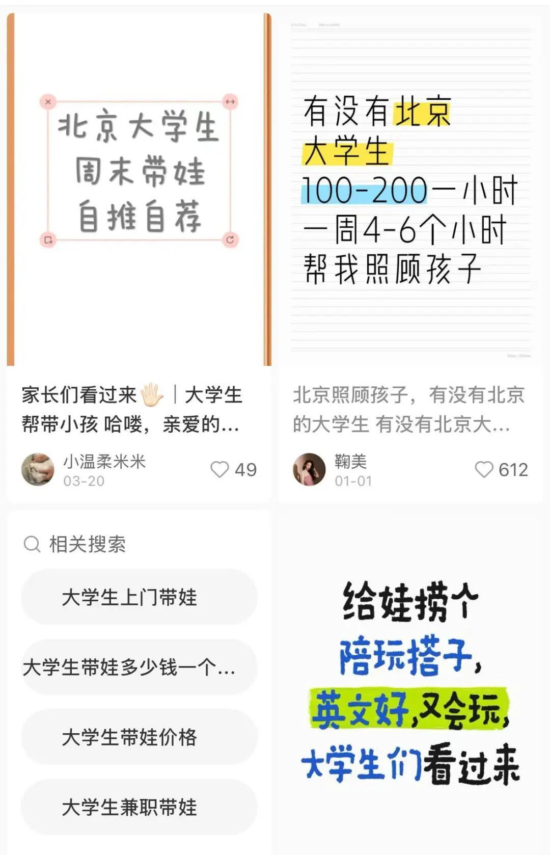 那么,现在这种表象存在哪些法律风险?赵树坤分析指出,最初是可能激励侵权包袱。关于大学生来说,处理陪玩、辅导功课、阅读绘本等任务可能还比拟半谈落发,然则若触及3岁以下婴幼儿的照护或生存料理,则风险较高,一朝处理不好,可能会激励误期纠纷并承担侵权包袱。