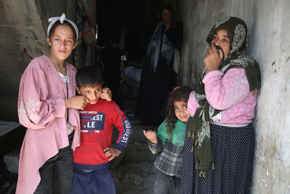 4月2日,在加沙地带南部城市拉法,东谈主们在支属物化后悲痛不已。新华社发