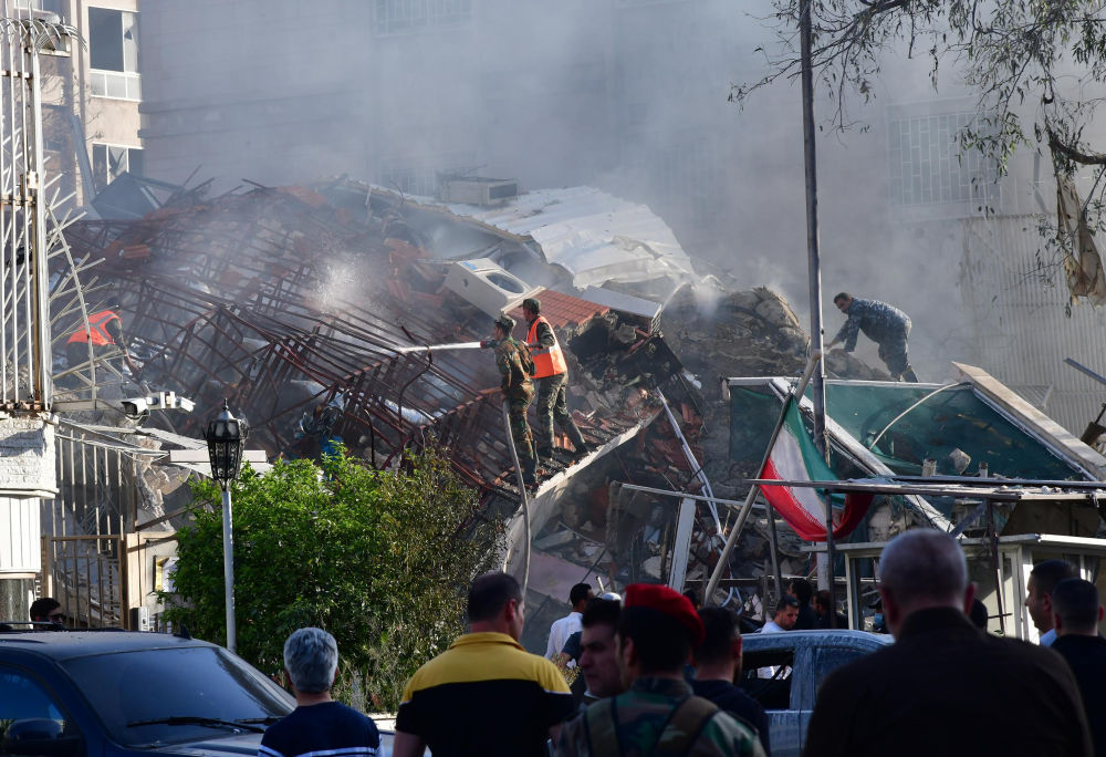 4月1日,在叙利亚齐门大马士革,转圜东谈主员在伊朗驻叙使馆遭袭现场搜救。新华社发